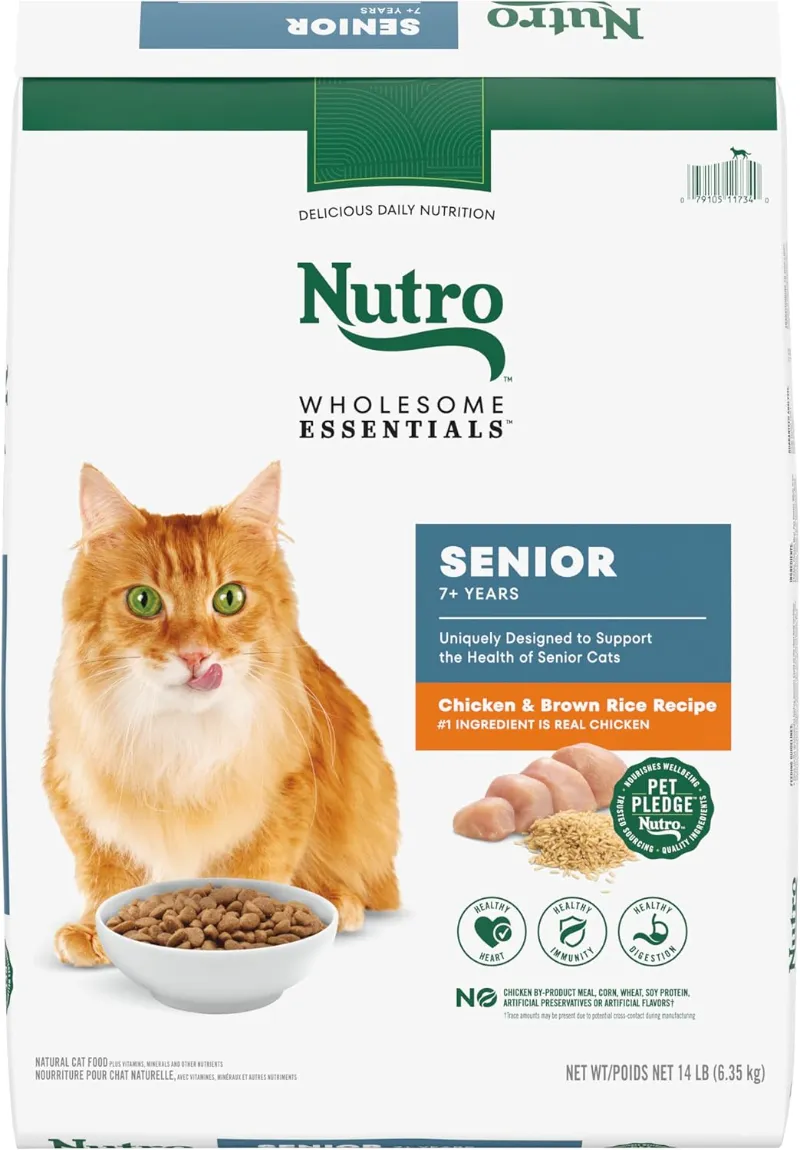 Support your senior cat’s health and happiness with Nutro Wholesome Essentials Senior Dry Cat Food, made with real chicken as the #1 ingredient. This premium recipe pairs high-quality protein with wholesome brown rice to support muscle maintenance and overall vitality in aging cats. Packed with natural prebiotic fiber, it promotes healthy digestion, while the blend of essential antioxidants like Vitamin E and Selenium helps bolster your cat’s immune system through their golden years.